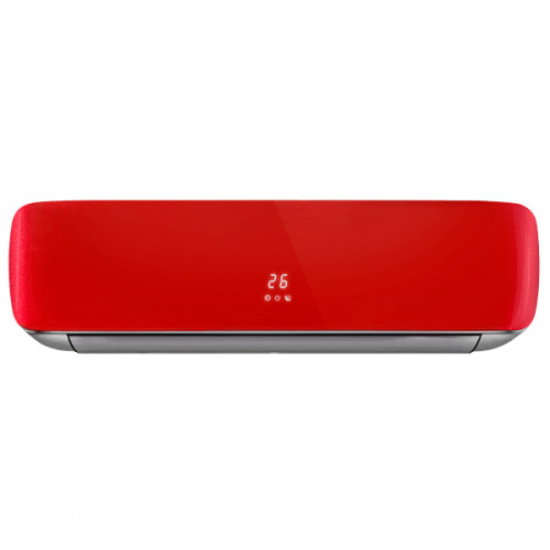 Перед вами кондиционер из серии RED Crystal Super DC Inverter, который выделяется насыщенным красным цветом и элегантным дизайном. Сочетание акриловой панели и серебристого корпуса делает его стильным дополнением любого интерьера.
