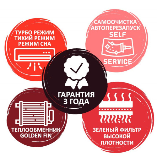 Кондиционер соответствует классу энергопотребления А, а уровень шума начинается от 37 дБа. Дополнительные функции включают: