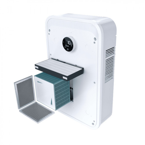 Управлять устройством можно с пульта ДУ или через мобильное приложение, что позволяет настраивать работу системы удалённо. Встроенный датчик VOC анализирует уровень загрязнения воздуха и автоматически регулирует мощность вентиляции.