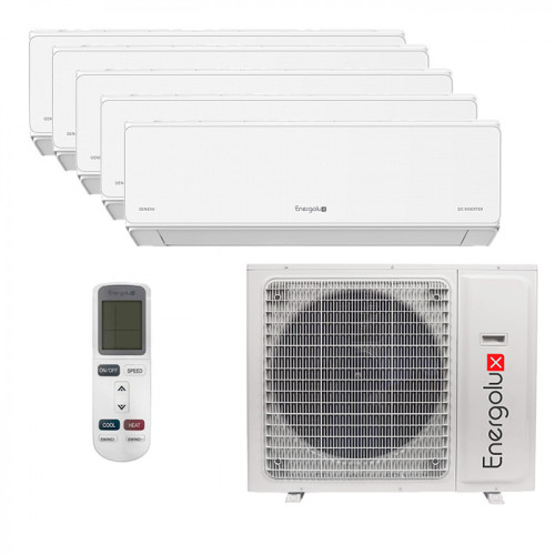 Мультисплит-система Energolux SAS07M3-AI x 5 / SAM42M2-AI/5 — это современное решение для создания комфортного микроклимата в нескольких помещениях одновременно. В комплекте идут 5 настенных внутренних блоков серии Geneva, каждый из которых управляется индивидуально с помощью пульта ДУ. Это позволяет гибко настраивать температуру в разных комнатах.