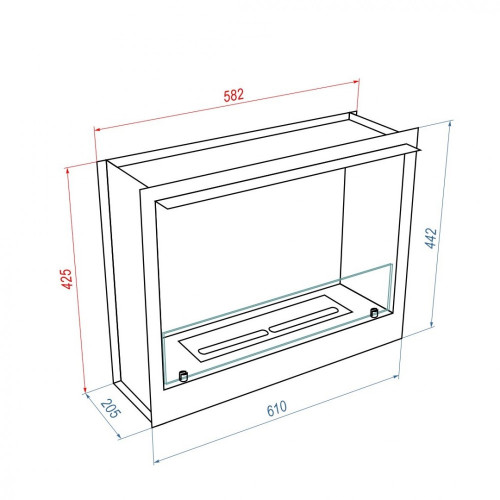 Корпус устройства изготовлен из прочной стали и нержавеющей стали в элегантном черном цвете, что гарантирует долговечность и стильный внешний вид. Защитное стекло толщиной 0.9 см обеспечивает безопасность использования, предотвращая случайные возгорания и ожоги. Топливный блок объёмом 1 л из нержавеющей стали позволяет наслаждаться горением до 2.5 часов, а ручное управление делает эксплуатацию интуитивно понятной. Этот биокамин для домашнего использования легко встраивается в ниши или мебель, подчеркивая современный дизайн помещения.
