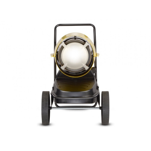 Конструкция тепловой пушки включает напольное исполнение с колесиками и ручкой, что делает ее мобильной и удобной для перемещения. Корпус выполнен в желтом цвете и имеет цилиндрическую форму, а теплообменник из нержавеющей стали AISI 430 гарантирует долговечность и устойчивость к высоким температурам. Устройство поддерживает бесступенчатую регулировку мощности и оснащено электронным управлением, включая розжиг горелки и встроенный термостат для точной настройки температуры.